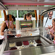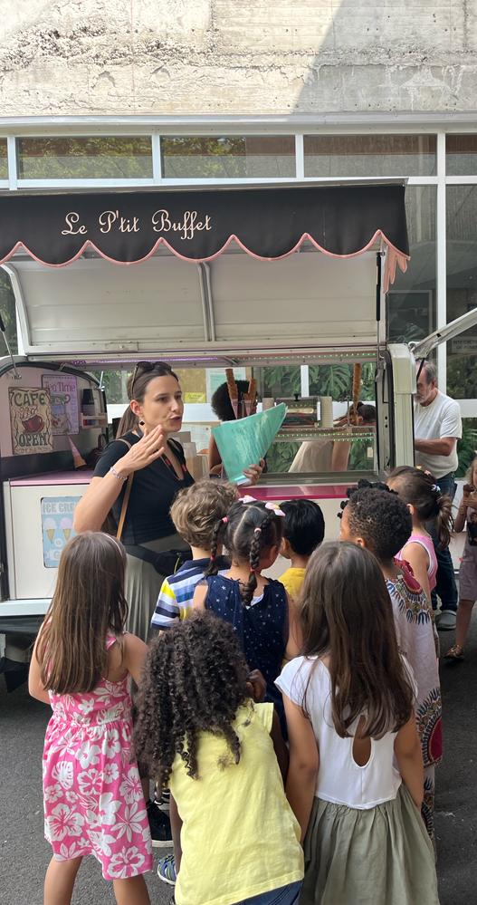 Le triporteur Bougainvillier viendra régaler vos enfants de glaces artisanales 100% fruits, un dessert surprise servi dans le préau!