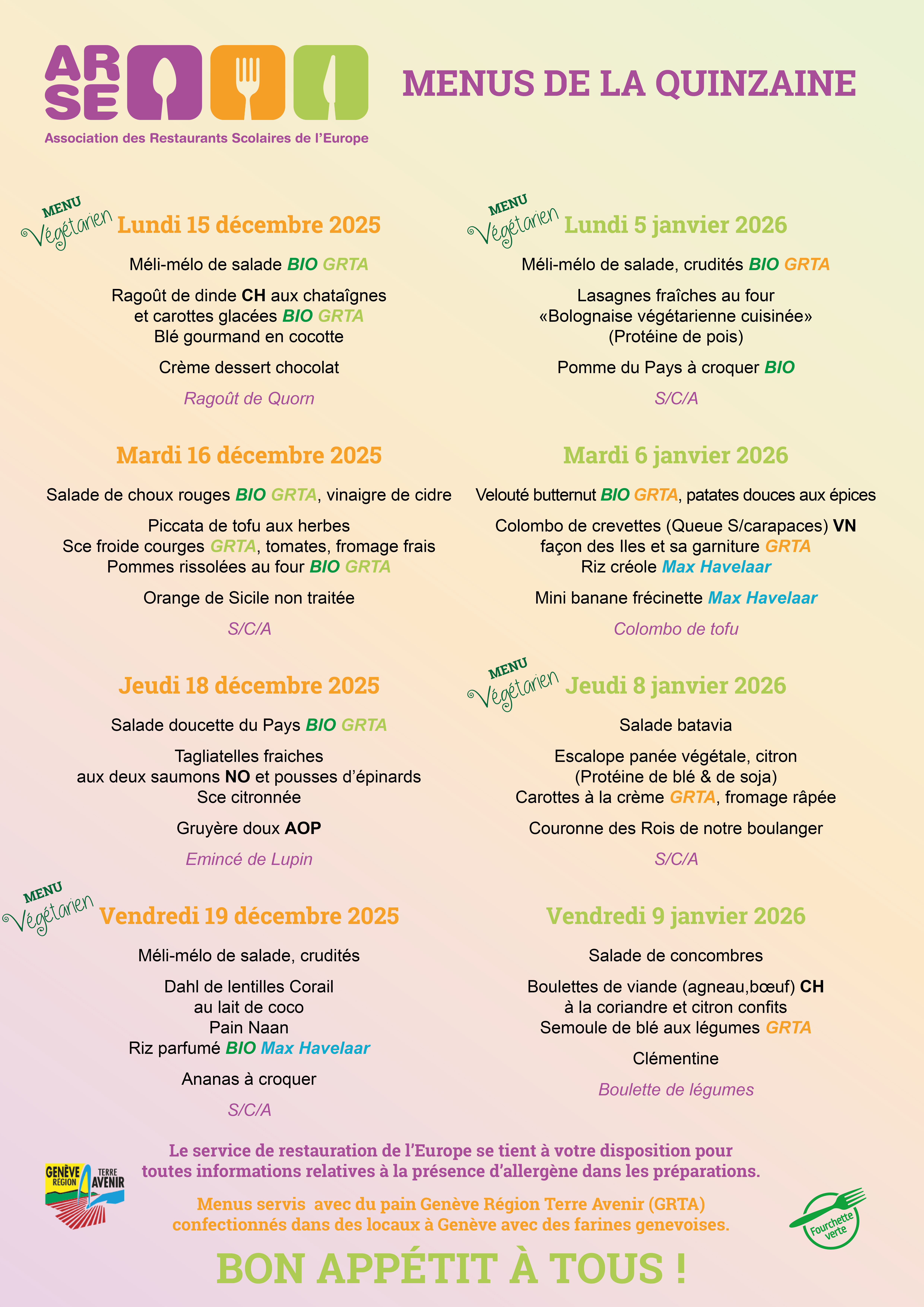 Pour les enfants de l’école de l’Europe qui mangent à Poly: Lundi 22 mai